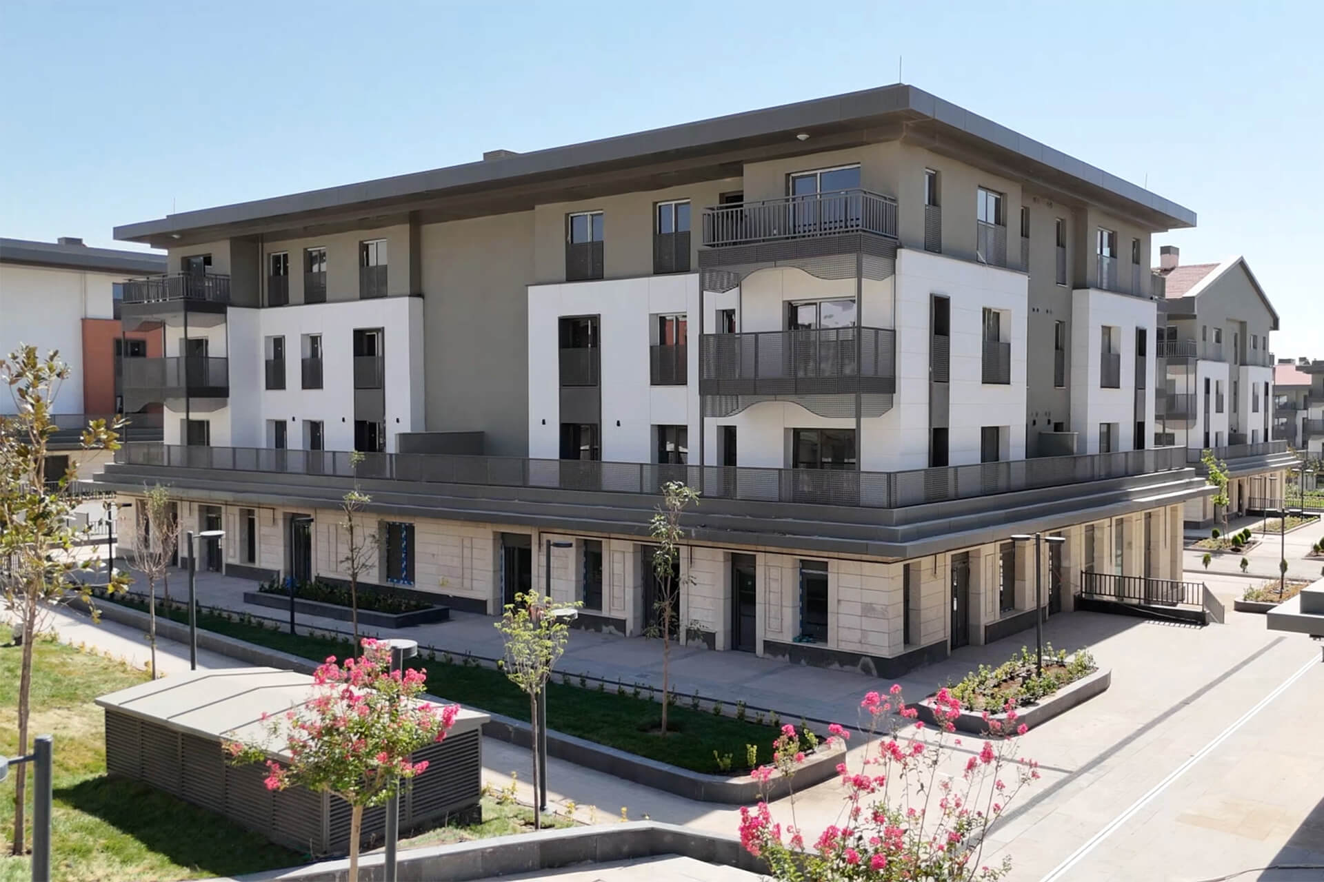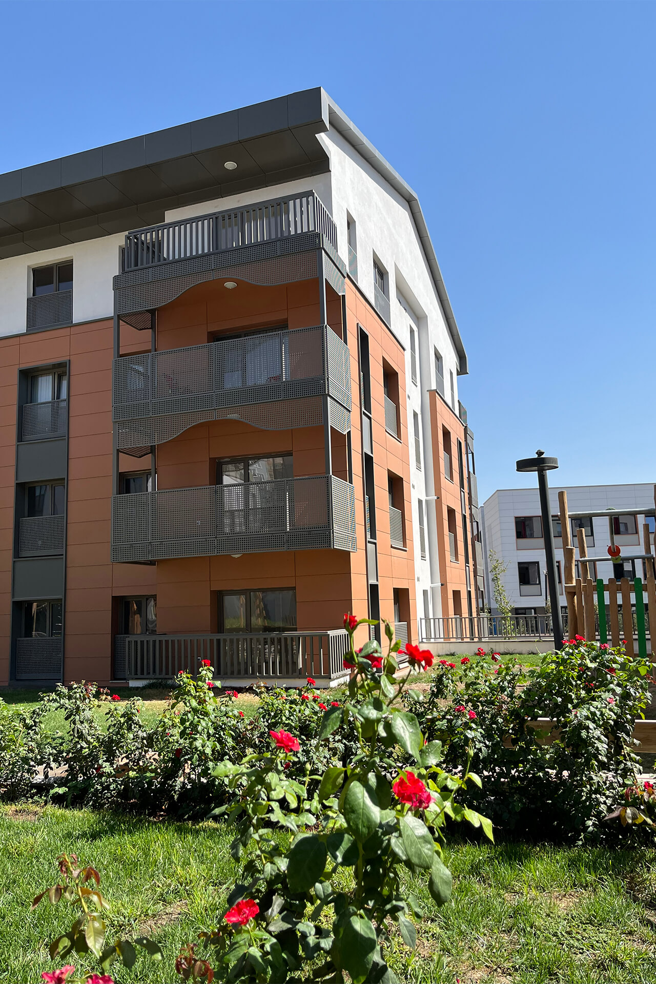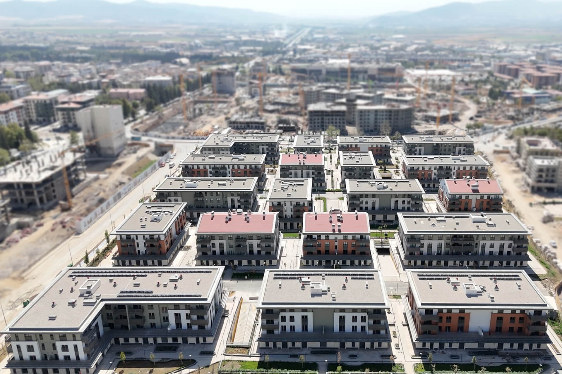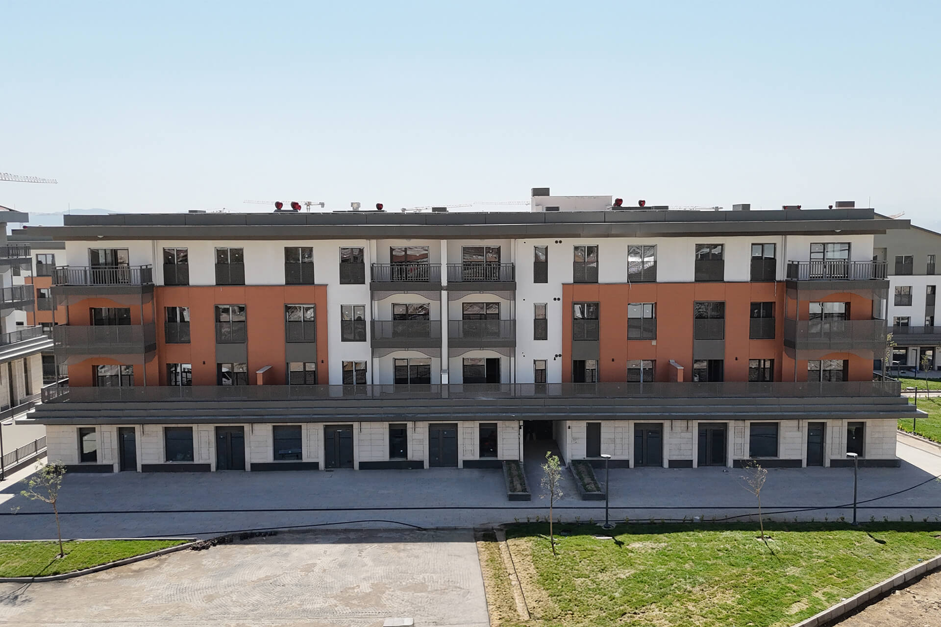 Kahramanmaraş’ta Azerbaycan Hükümeti ve TOKİ iş birliğiyle hayata geçirilen Azerbaycan Mahallesi Projesi, şehrin dikkat çeken konut projelerinden biri olarak öne çıkıyor. Toplamda 1.183 konut ve 1.595 iş yeri olmak üzere 2.778 bağımsız bölümden oluşan proje, mimari bütünlüğü ve estetik görünümüyle dikkat çekiyor. Projede cephe kaplamalarında HekimBoard düz levhalar tercih edildi. Her binada 2-3 farklı rengin bir arada kullanılması, yapılara hareketli ve dinamik bir karakter kazandırdı. Cephelerin yanı sıra balkon içlerinde, balkon saçak altlarında ve pencere çevrelerinde de HekimBoard düz levhaların kullanılması, tasarımın bütünlüğünü tamamlayan önemli bir detay olarak öne çıktı. Kullanılan 10 mm kalınlığındaki HekimBoard fibercement levhalar, A1 sınıfı yanmazlık özelliğiyle güvenli ve dayanıklı yaşam alanları oluşturmakta, uzun ömürlü bir çözüm sunmaktadır.