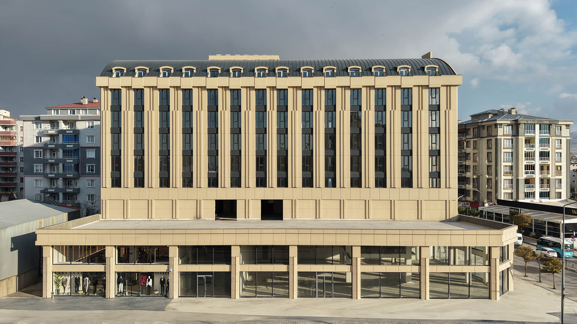 Van’ın mimari yaklaşımı; masif yüzey algısı, sade cephe düzeni ve çevresel koşullara dayanıklı malzemelerin kullanımı üzerinden şekilleniyor. Bölgenin sert kışları, güçlü güneş ışınımı ve yerel mimariye özgü yalın kütle anlayışı, cephede tercih edilen HekimBoard levhaların performansını öne çıkaran unsurlar arasında yer aldı.