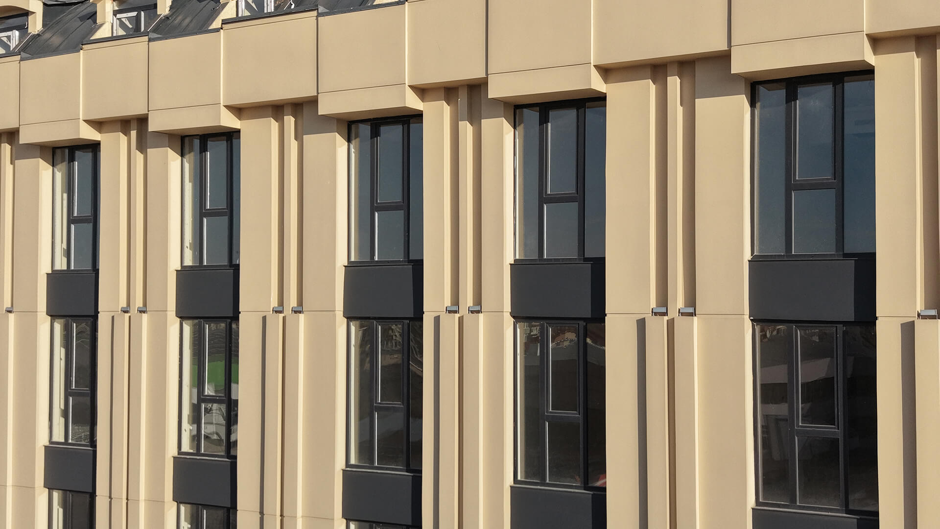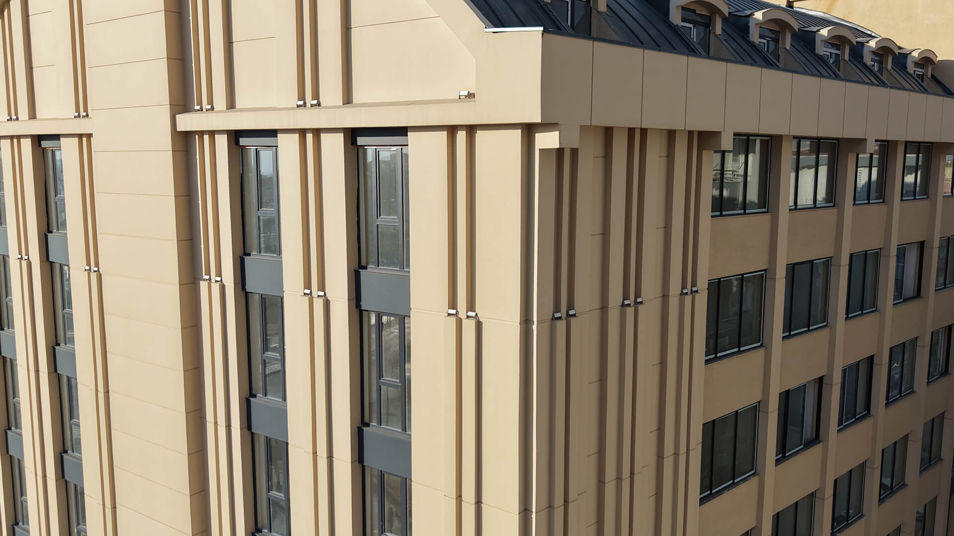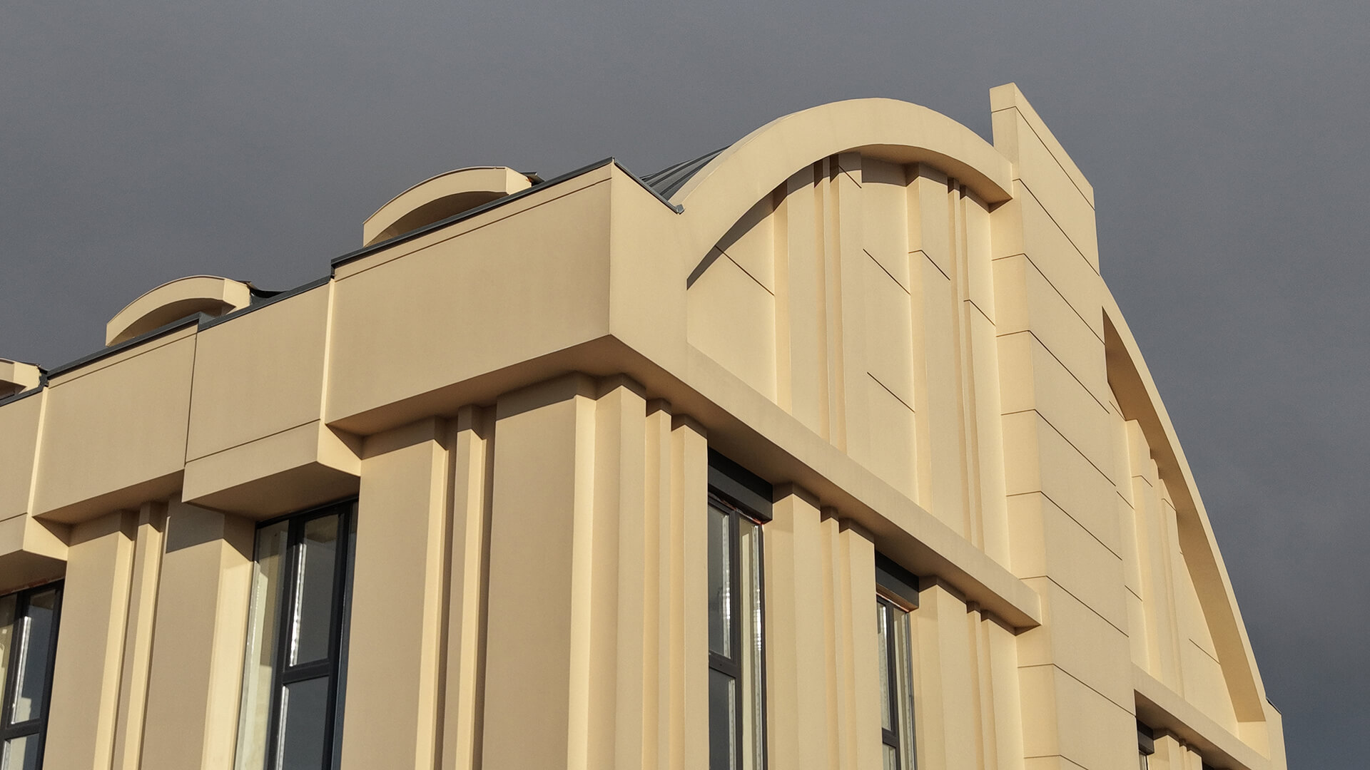 Projeye özgü olarak üretilen cephe söveleri ve mimari detaylar, uygulama aşamasındaki yüksek işçilikle birleşerek yapıya teknik ve estetik anlamda üst düzey bir nitelik kazandırdı. Detay çözümündeki titizlik, yüzeylerdeki bütünlük ve malzemenin verdiği monolitik etki cepheyi güçlü bir mimari ögeye dönüştürdü.